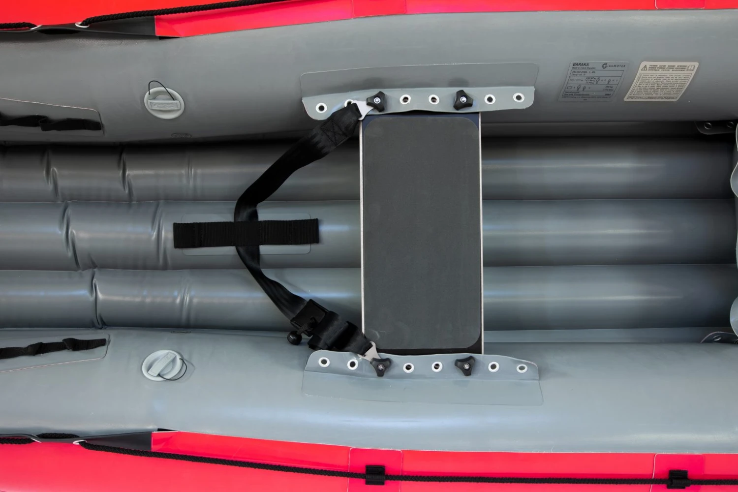 The Baraka is a 2 seater inflatable river canoe with a self-bailing bottom that can handle white water up to class 3. The boat has a stiff hull and a pronounced rocker making it easy to maneuver in whitewater. The Baraka is sometimes referred to as a “canoe-raft” by river guides because of it’s excellent rapid running ability, stability and ease of turning.