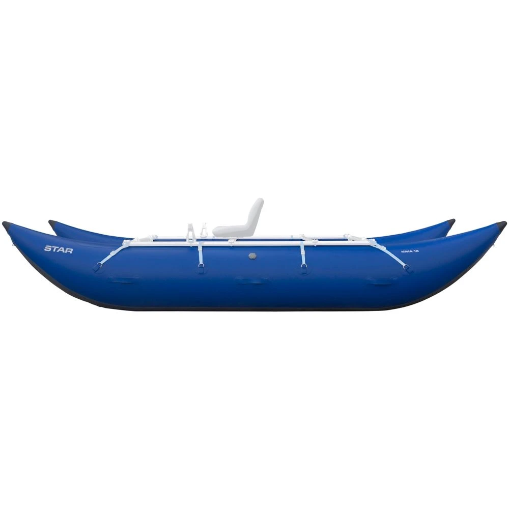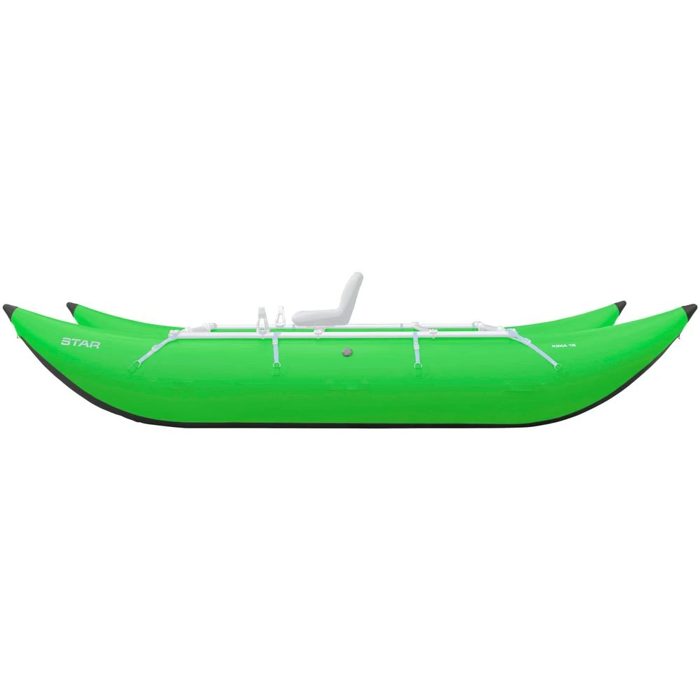 The Star Kima Inflatable Cataraft is ready to crush whatever whitewater comes its way. With ample rocker and large diameter tubes, the Kima easily rides over waves and holes. Perfect for day trips or lighter overnight trips, the Kima is perfect for anyone wanting a versatile and well rounded craft. For maximum durability, the Kima is constructed of 52/2000 PVC and has three separate chambers to keep the boat afloat in the event of a puncture. A chafe strip helps protect the boat from frame rub, while the 20 1.5″ D Rings allow lots of options to secure a frame (NOT INCLUDED) or gear.