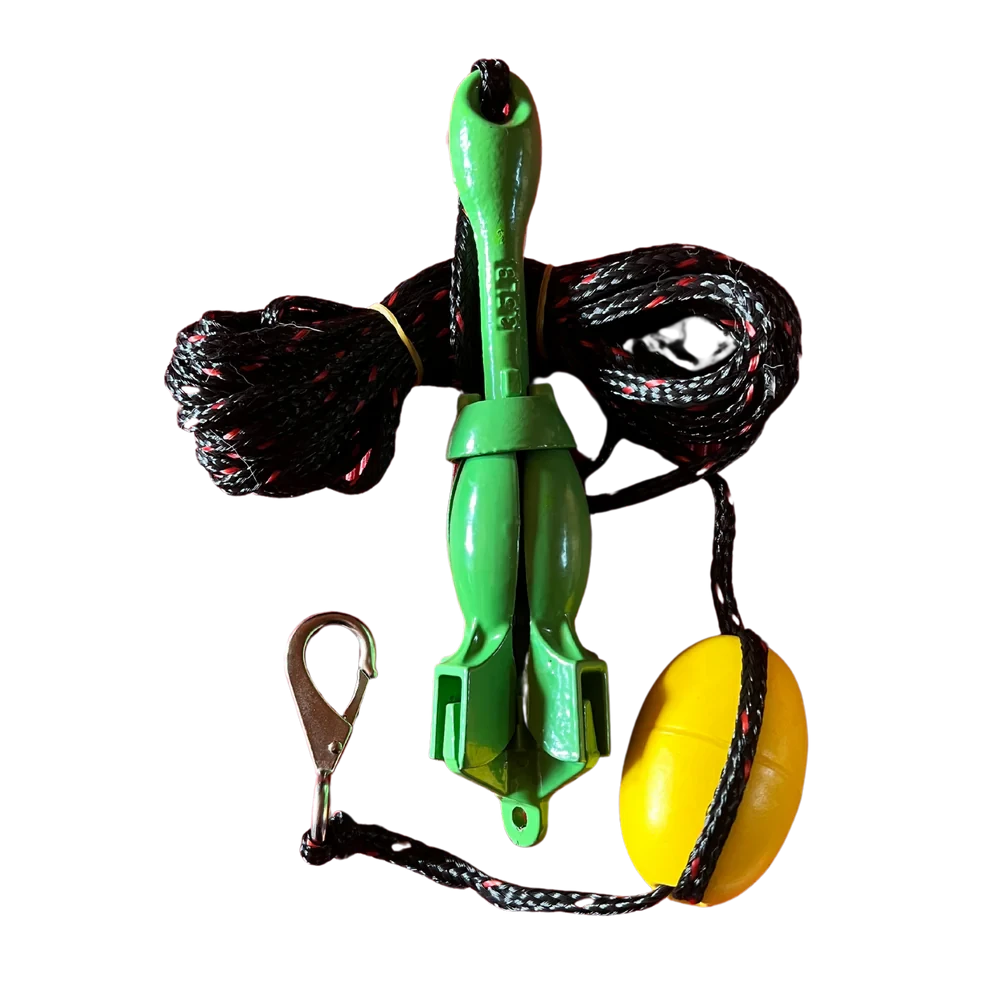 Our Paddle Board Anchor is ready to hold you in place. Designed for fishing boards like the SOLsombrero and SOLsumo, our multi person board the SOLfiesta, or any yoga board and yoga dock like the SOLshiva and SOLnamastation. It folds up for compact storage and transportation. There is a locking ring to hold it open to engage the flukes and keep you steady, or hold it closed for storage in the included bag. The rope includes a floating ball to assist in finding it if you drop the rope while attaching. A heavy duty metal clip keeps the anchor attached securely to a d-ring on the paddle board.