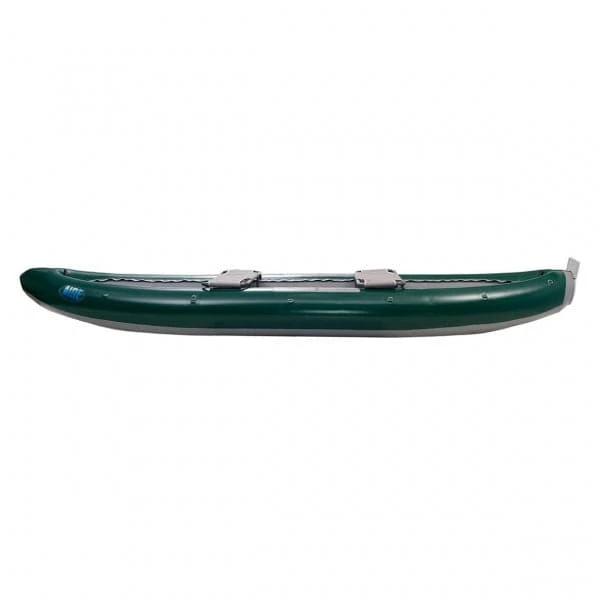 The AIRE Traveler inflatable canoe is popular with families as well as hunters and anglers because of its great stability and huge load capacity. No more ‘tipsy’ canoe handling with this wide craft. The Traveler comes standard with two removable bench seats that can be repositioned for use as a solo or tandem boat. Add a small motor on the transom for moving quickly across still water. Optional frameless oar stands can also be added. Rolls up easily to fit into a car trunk with room to spare.