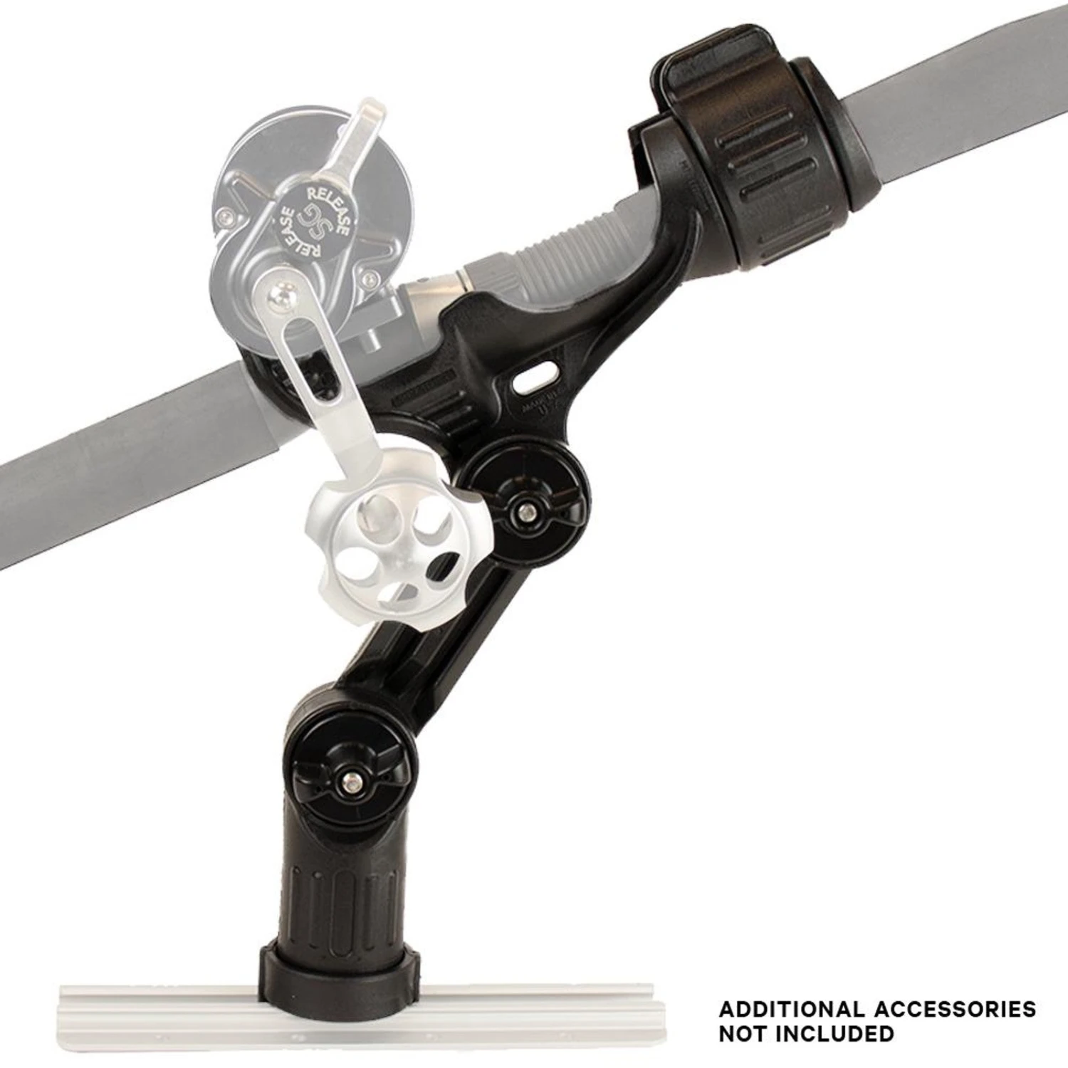 The YakAttack Omega Pro Rod Holder is “The last rod holder you’ll ever need”! This is a truly universal solution that works flawlessly with spinning, casting, larger conventional reels, and yes – even fly rods of all sizes. A 360 degree rotating collar offers the ability to quickly secure the rod by capturing the reel, and allows spinning reels to be stowed in the natural downward position, not hung off the side. The Omega Pro features an extension arm to help get your reel higher off the water or helps accommodate longer rod butts.