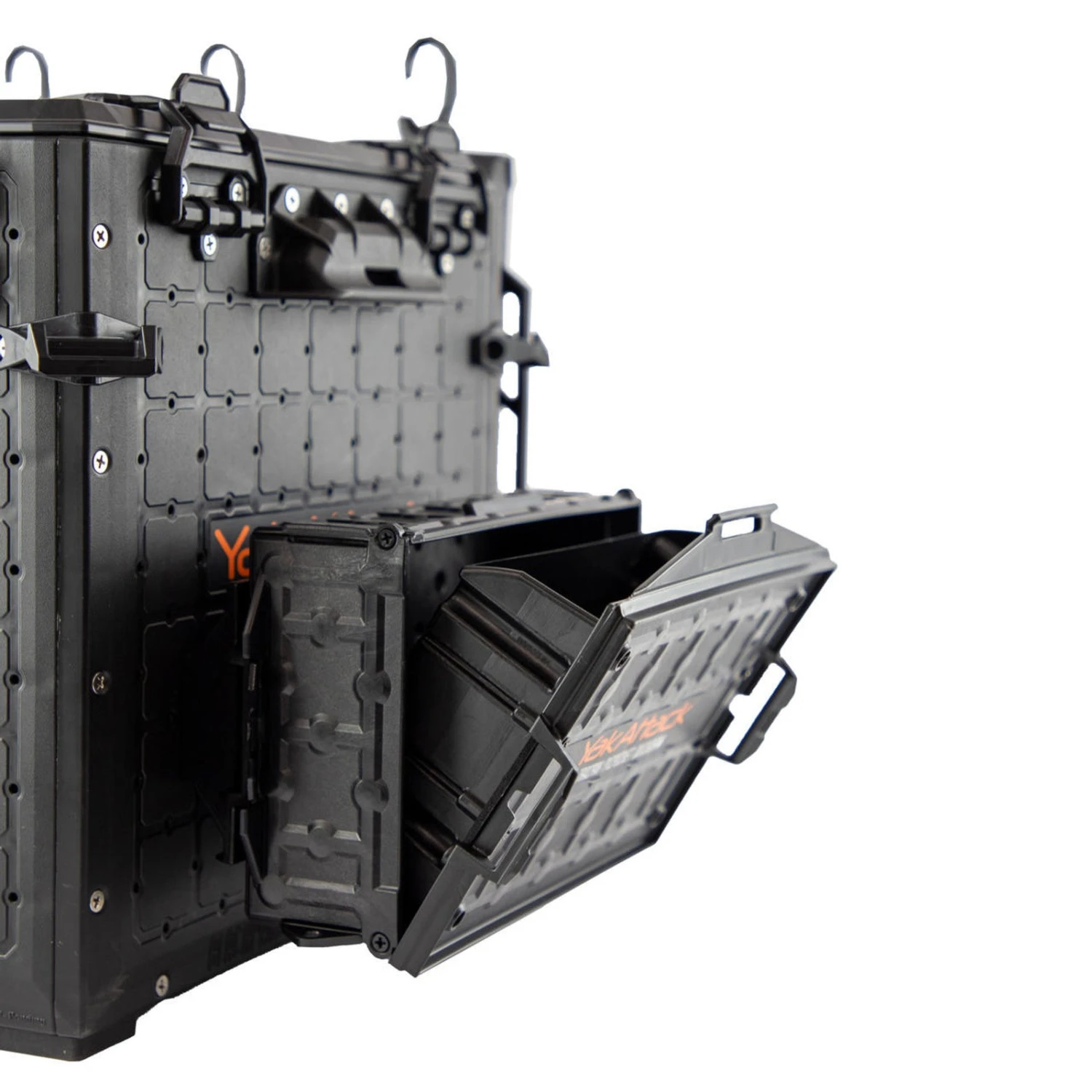 The YakAttack TracPak with PicPocket QuickDraw combines stackable storage with a 7.5″ GridLoc PicPocket, delivering accessible storage with a spring-loaded lid mechanism. Its 7″ x 2.25″ interior compartment opens at a 30° angle upon unlatching, providing full PicPocket access. Performs optimally when vertically mounted on the BlackPak Pro, but functions effectively on horizontal GearTrac installations as well. Complete package includes the TracPak Quick Release Base and all mounting hardware for GearTrac or BlackPak Pro integration.